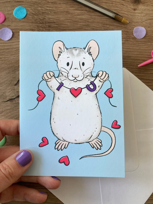 I Love You Rat | Cute Rat Love Greeting Card | Fancy Rat Gift