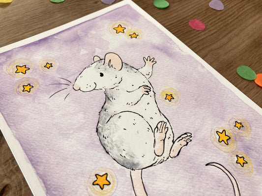 Joy | Cute Rat Art Print | Roan Rat Artwork