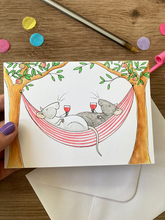 Summer Rats | Cute Rat Blank Greeting Card | Rat Hammock Greeting Card