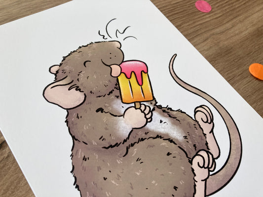 Summer Treats | Cute Rat Art Print | Summer Rat Artwork