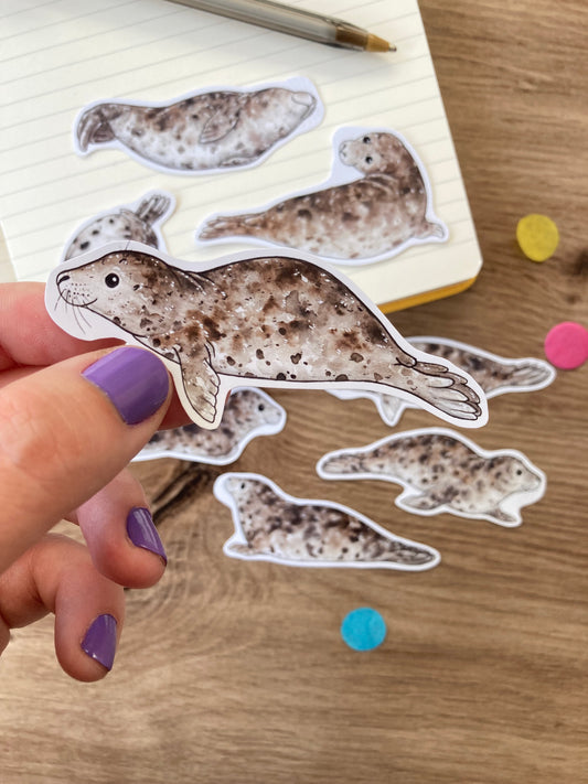 Cute Grey Seal Stickers | Set of 8 Seal Stickers | Seal Gift