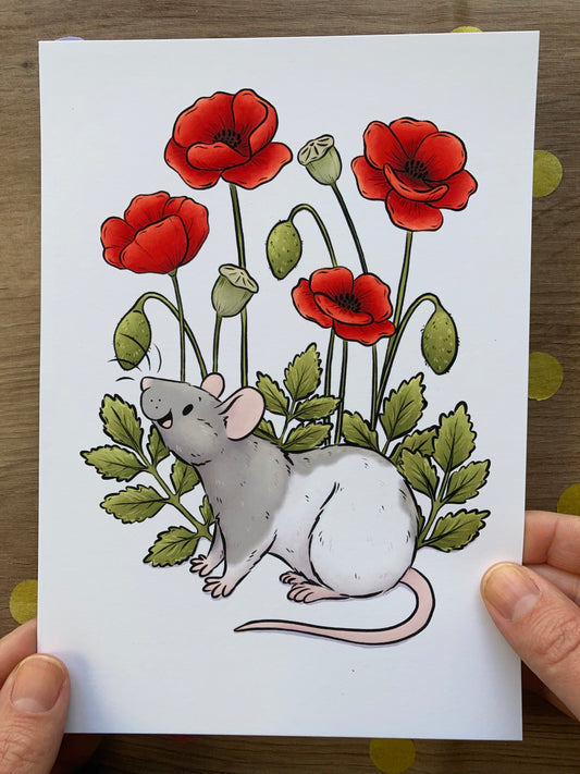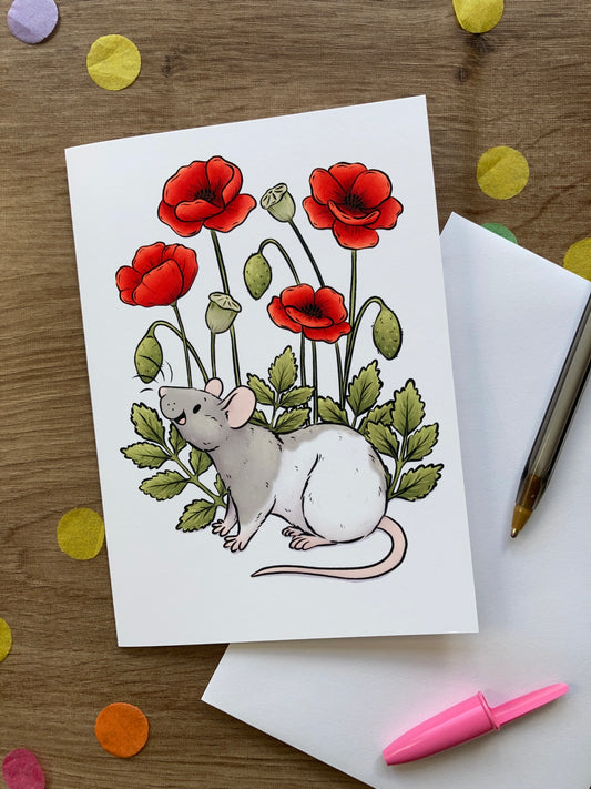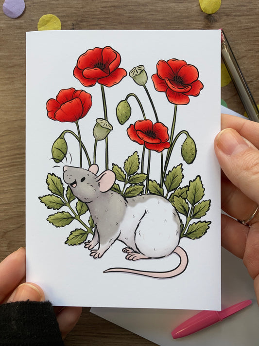 Poppy Rat Greeting Card | Flower Rat A6 Greeting Card