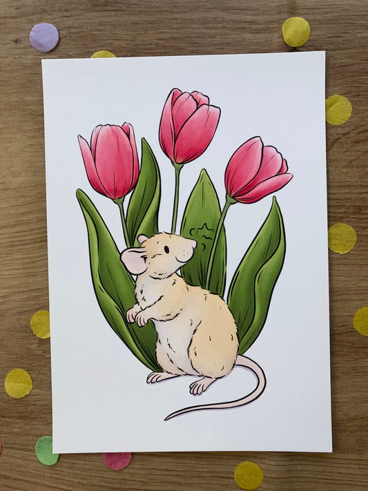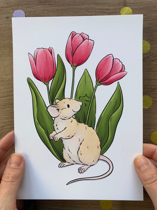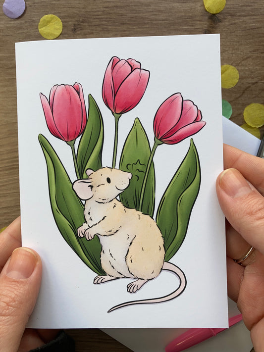 Tulip Rat Greeting Card | Flower Rat A6 Greeting card