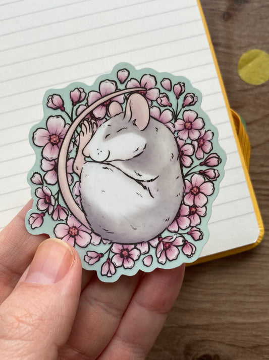 Cherry Blossom Rat Vinyl Sticker | Glossy or Holographic Vinyl Rat Sticker