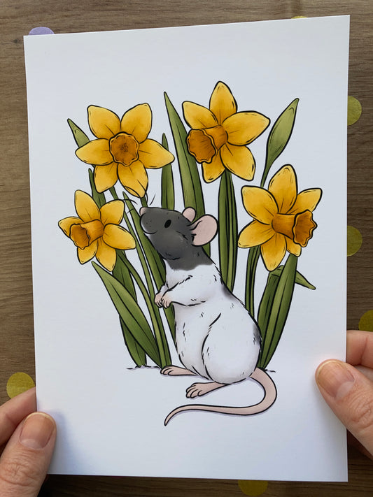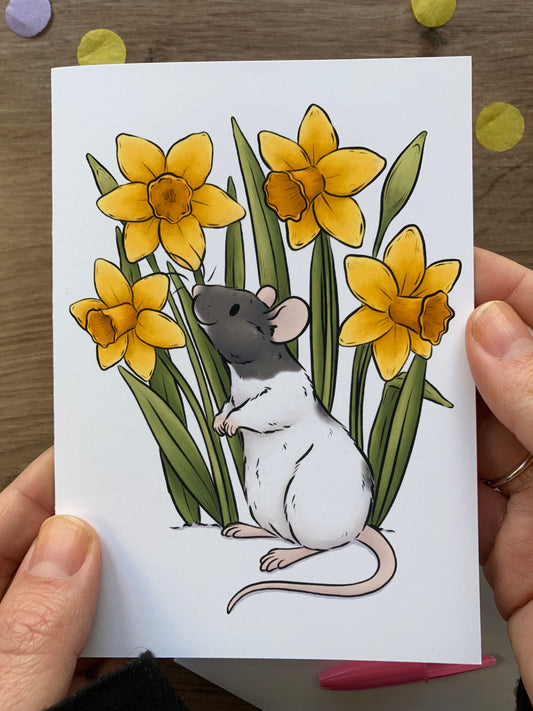 Daffodil Rat Greeting Card | Flower Rat A6 Greeting Card