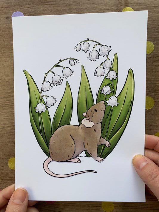 Lily Of The Valley Rat Art Print | Flower Rat Wall Art