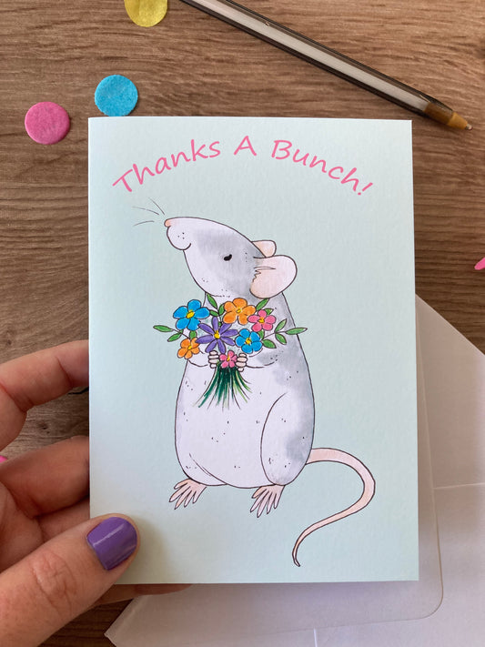 Thanks A Bunch | Cute Roan Rat Blank Greeting Card | Fancy Rat Gift
