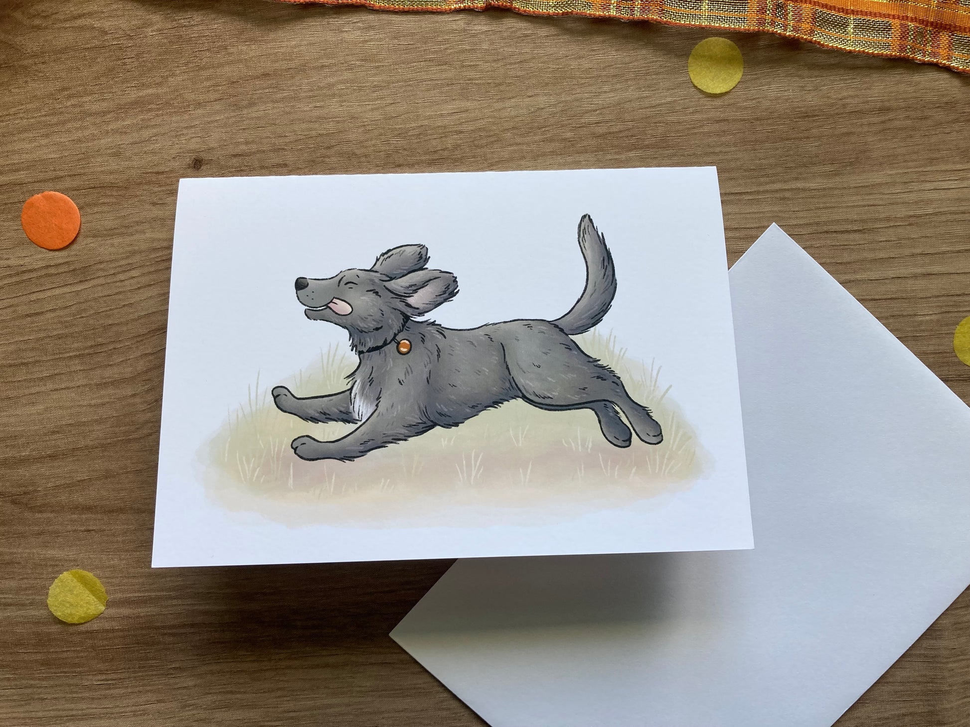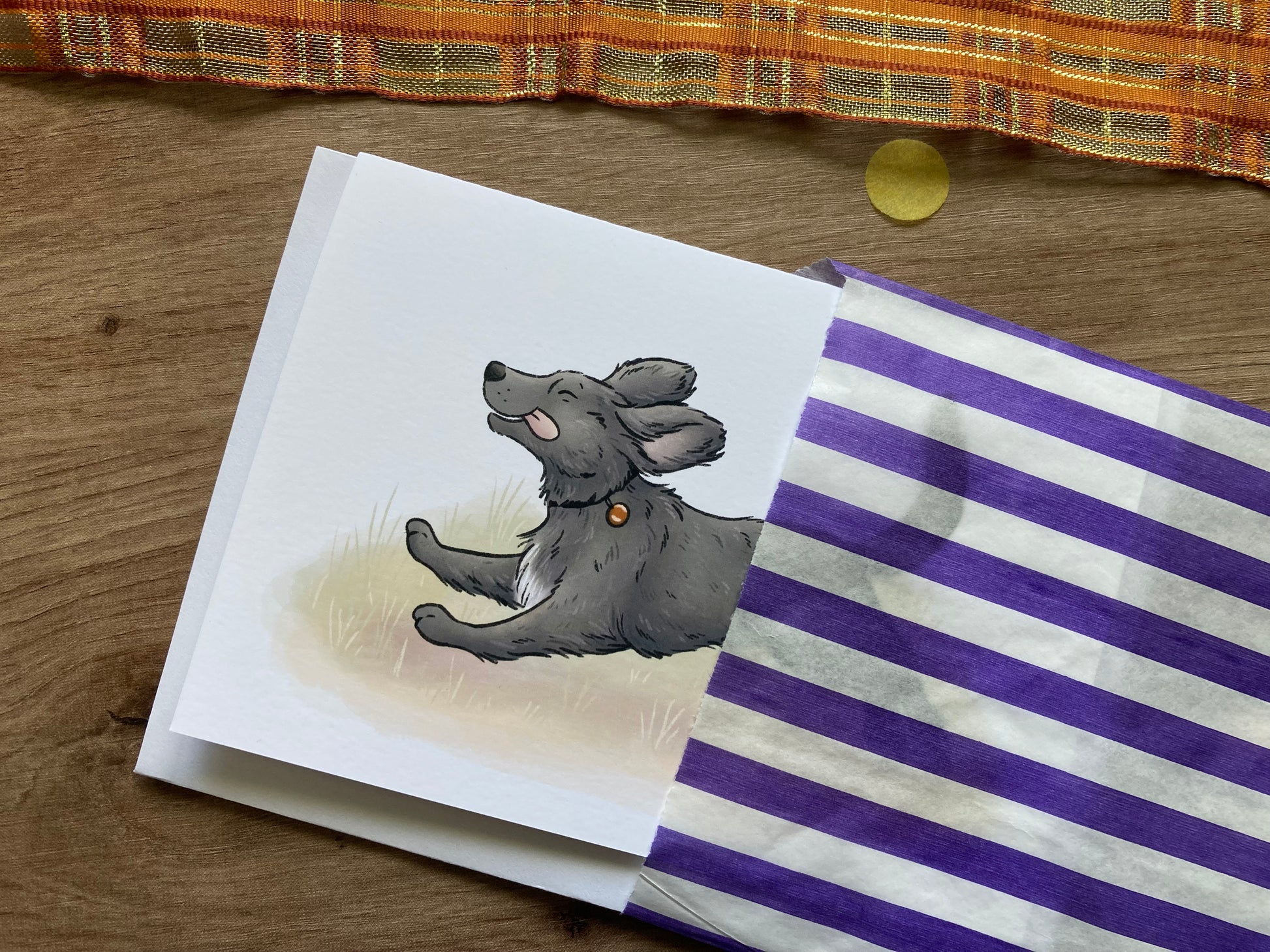 To avoid extra plastic waste every dog greeting card is packed in a paper bag or tissue paper instead of a cellophane bag, making them environmentally friendly.