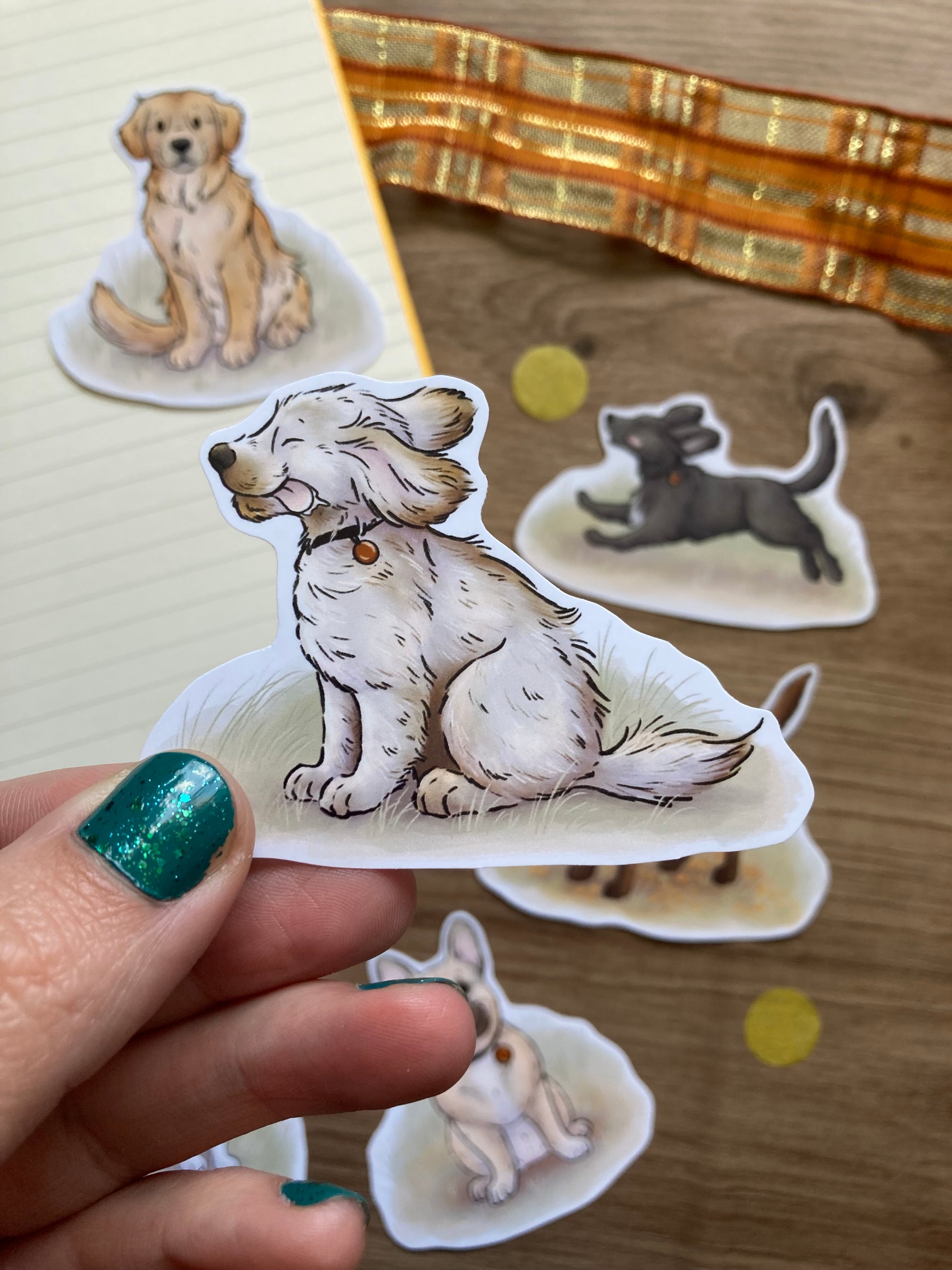 - This dog sticker pack features glossy stickers that are NOT waterproof or vinyl