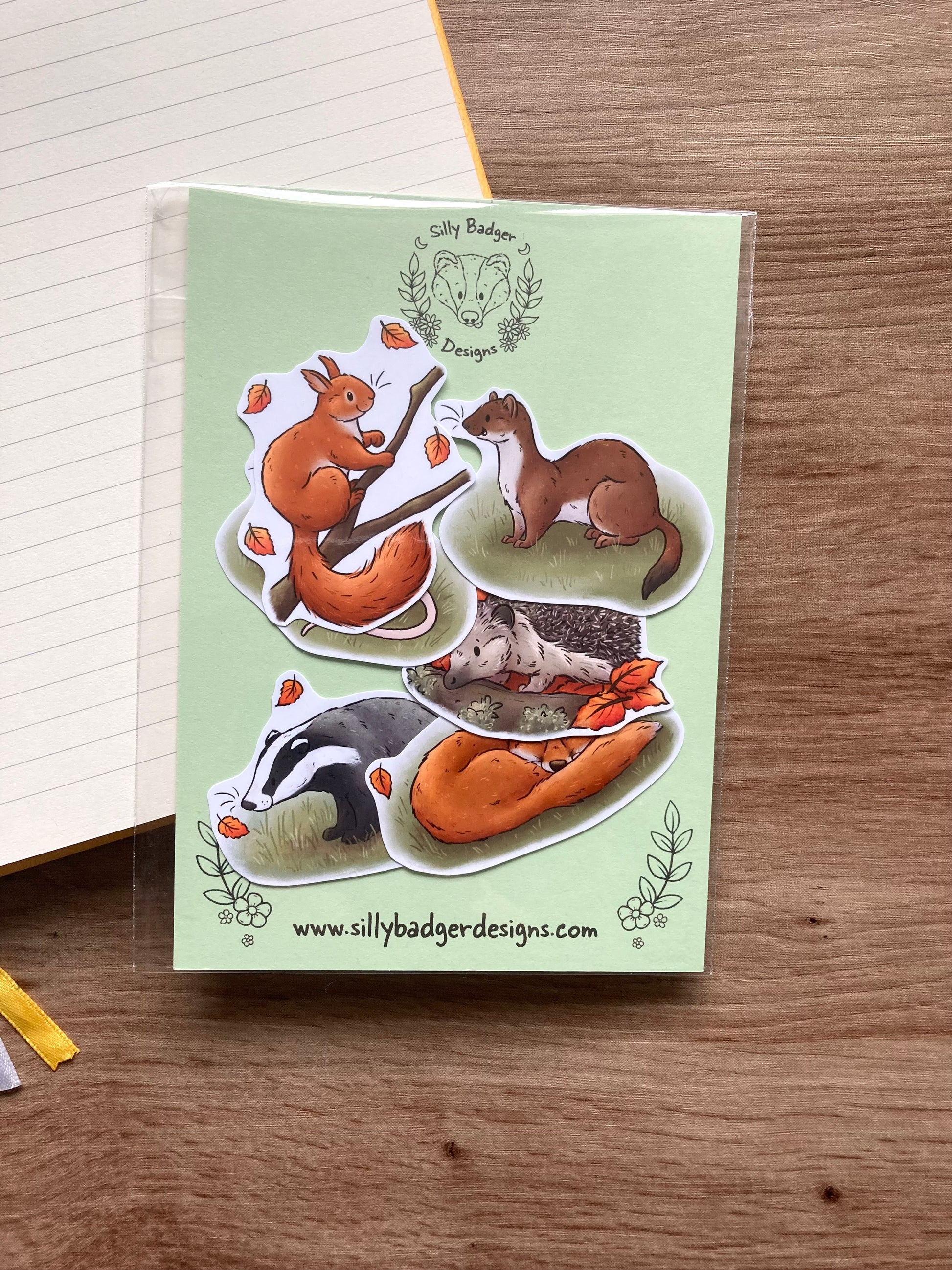 Autumn Wildlife Sticker Pack | Pack of 6 Autumn Wildlife glossy Stickers