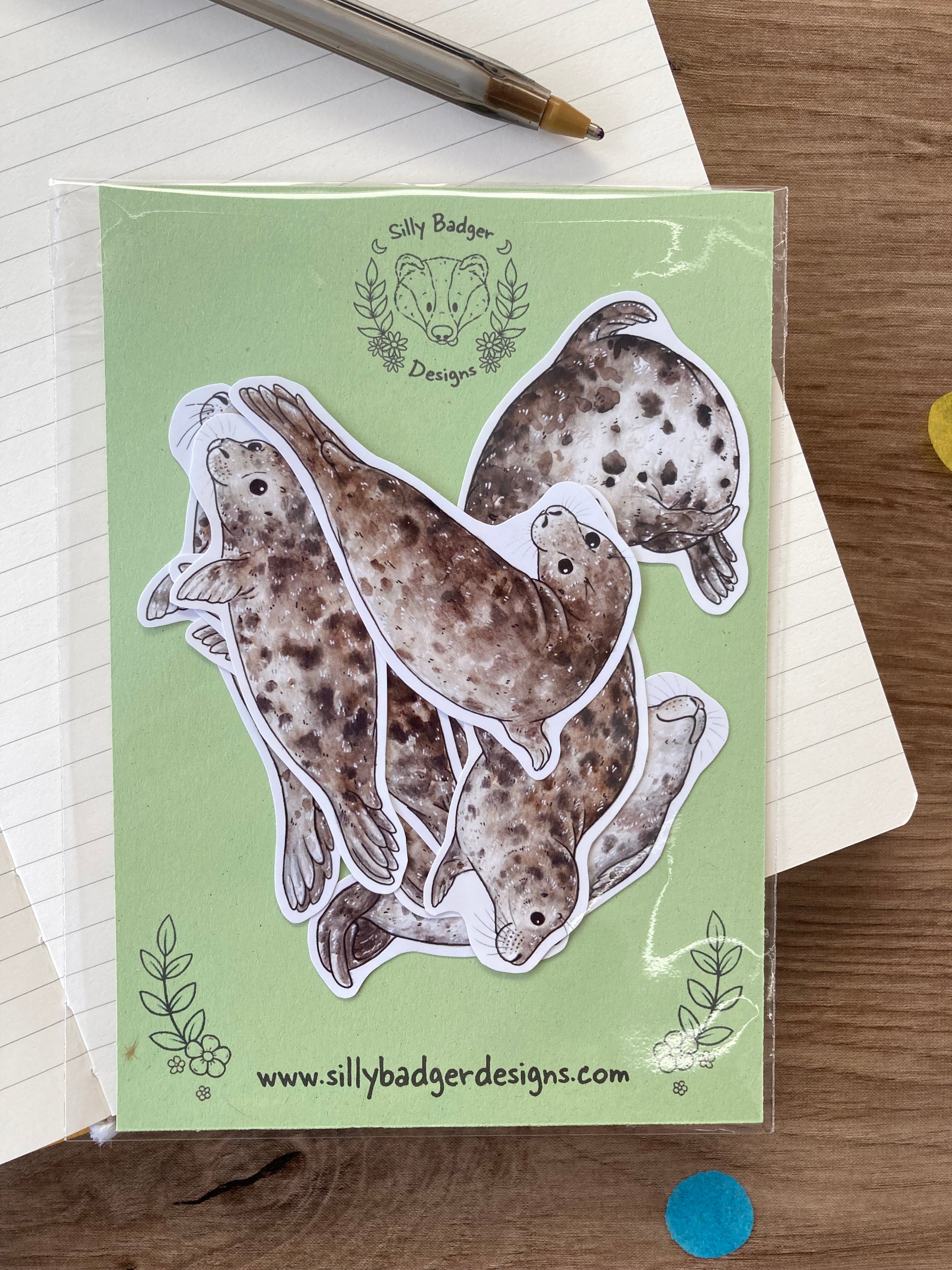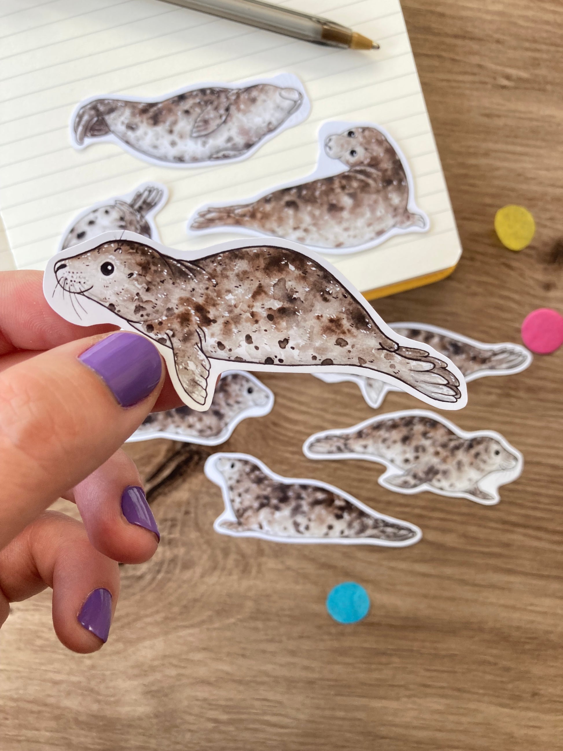 This pack of seal stickers is a must have for any seal lover. The set of 8 seal stickers features 8 original designs taken from original watercolour paintings by the artist. As someone with a passion for sea life the artist couldn't resist turning these paintings in to stickers.