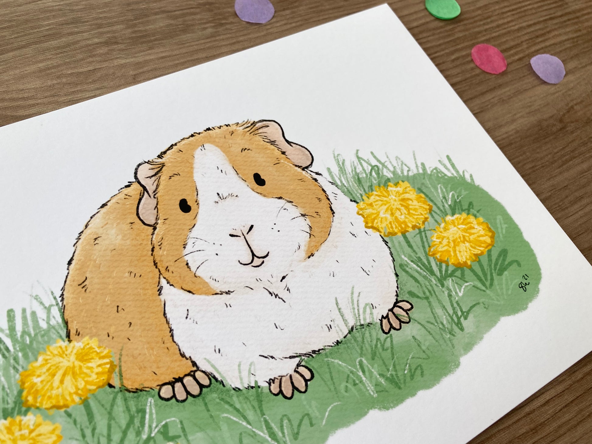 Dandelion Guinea Pig | Spring Guinea Pig Art Print | Guinea Pig Artwork