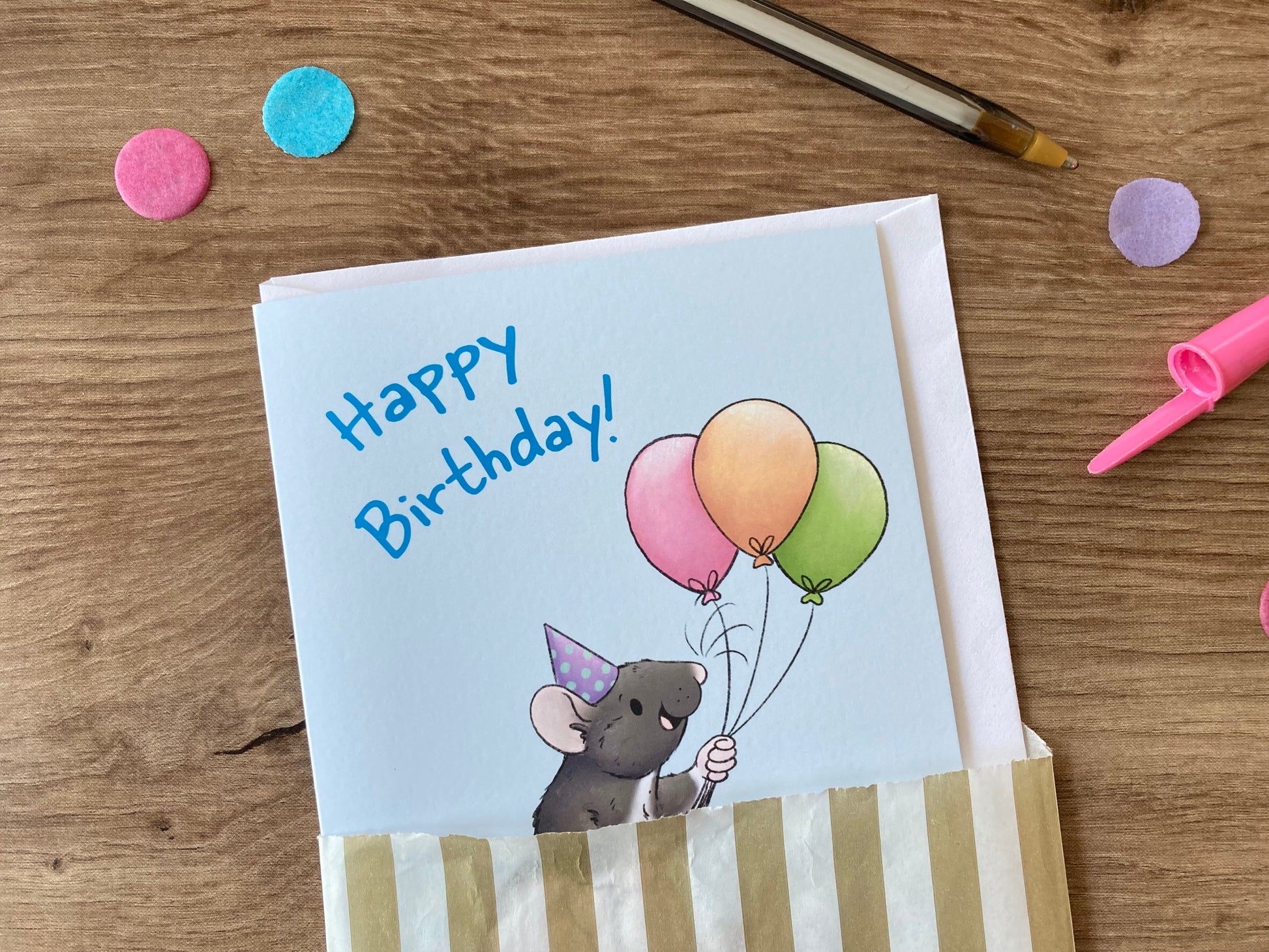 Ratty Birthday Balloons | Cute Hooded Rat Birthday Card | Rat Birthday Celebration