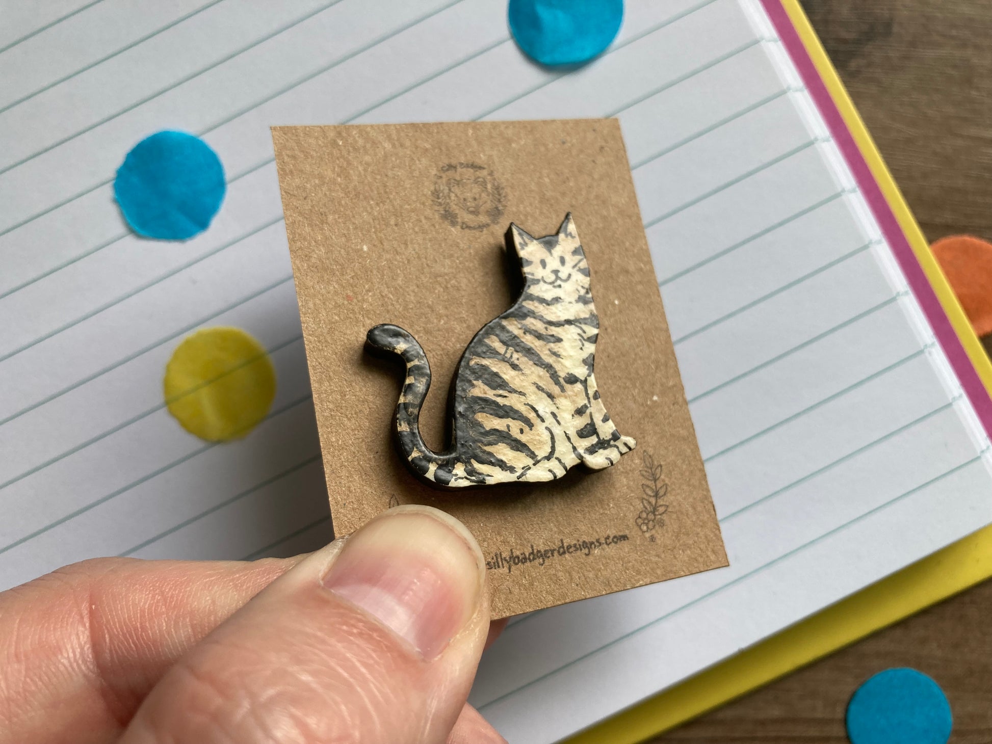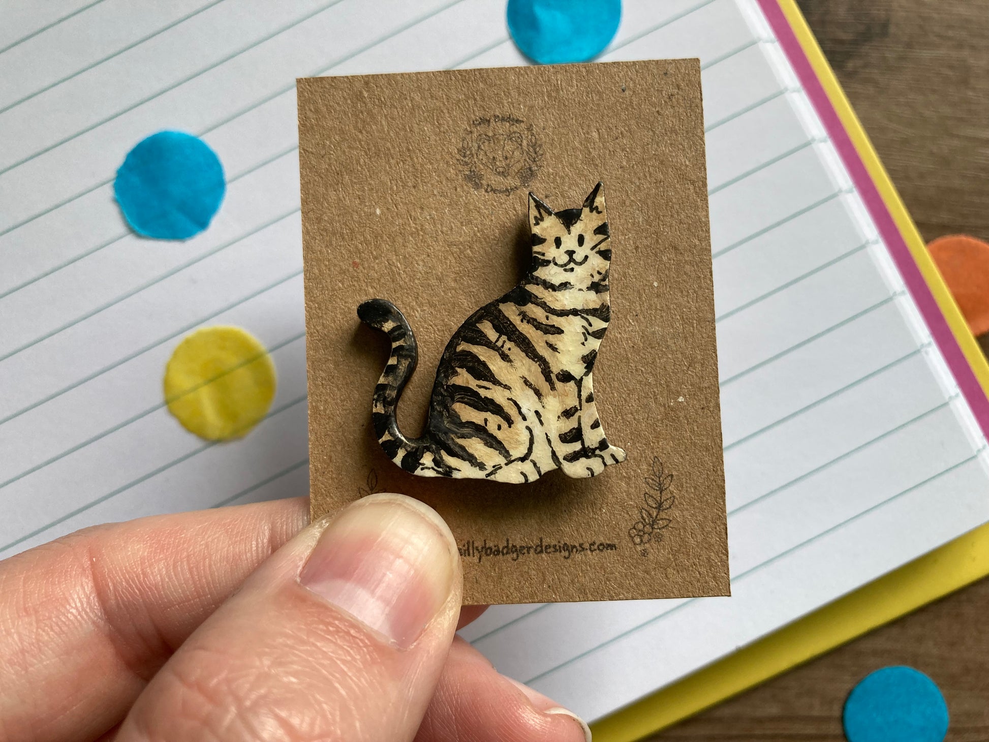 Charli | Tabby Cat Pin Badge | Hand Painted Wooden Cat Badge Accessory