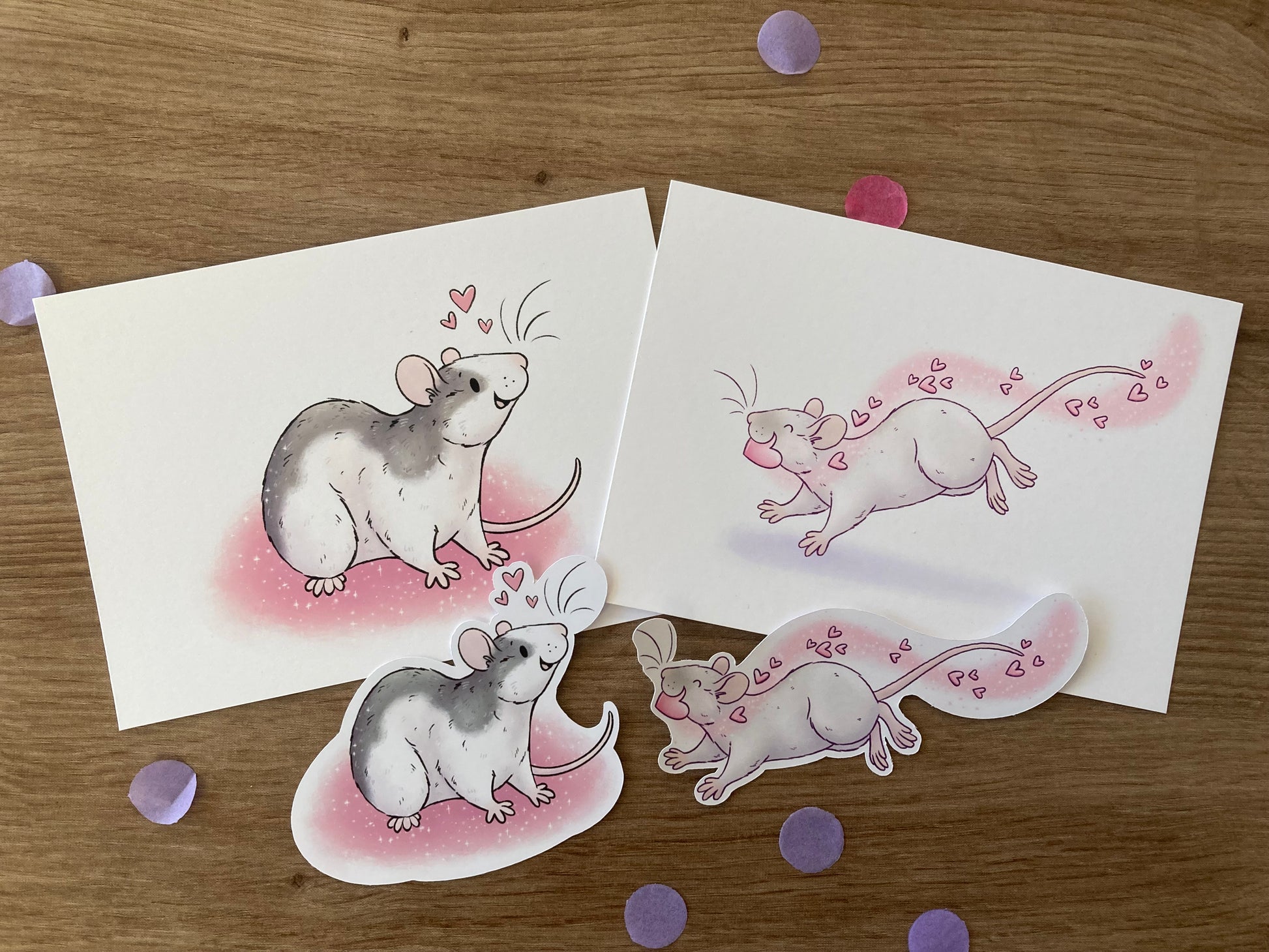 The Complete Valentines Rat bundle - Glossy stickers and art prints bundle